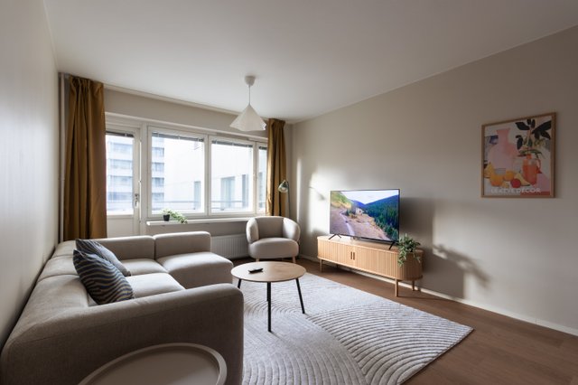 Tätä täysin remontoitua asuntoa taustoittaa loistava pohjaratkaisu, joka käsittää modernin avokeittiön laadukkailla kodinkoneilla. Täällä hyvin tilaa myös ruokailuryhmälle kun seinä on kaadettu. Huipputyylikäs kylpyhuone pesukonevalmiuksin. Ympäri asunnon kiertävät vinyylilattiat. Reilunkokoiset huonetilat moneen tarpeeseen ja kaappitilaa on reilusti. Nämä kaikki pinnat ovat iskemättömät!