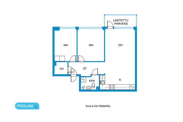 - Ei tarkistusmitattu. Pinta-alat saattavat tämän ikäisissä kohteissa (yhtiö rekisteröity ennen 01.01.1992) poiketa olennaisestikin asuinrakennusten nykyisten mittaustapojen ja standardien (SFS 5139) mukaan laskettavasta asuintilojen pinta-alasta. Pinta-ala voi siis olla edellä mainittua pienempi tai suurempi.