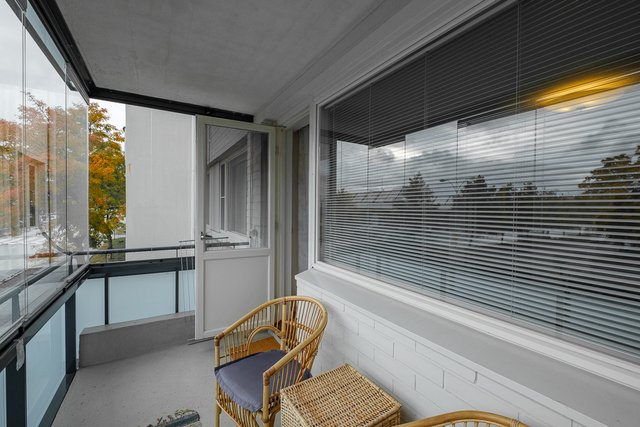 parvekelasitus jokaiseen parvekkeeseen. Parvekejulkisivu maalattu, parvekelinjoihin