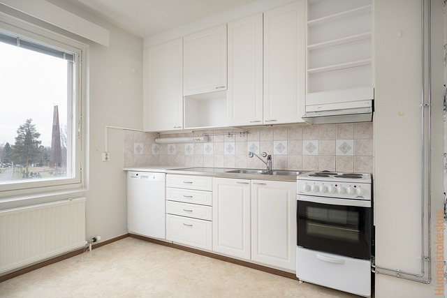 - Lisätietoja sisältyvistä varusteista: kaapistot, kiinteät valaisimet, naulakko, sälekaihtimet/rullaverhot, verhotangot