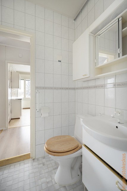 - WC-istuin, allaskaappi, peilikaappi, pesukoneliitäntä, suihku, ja kiinteät valaisimet