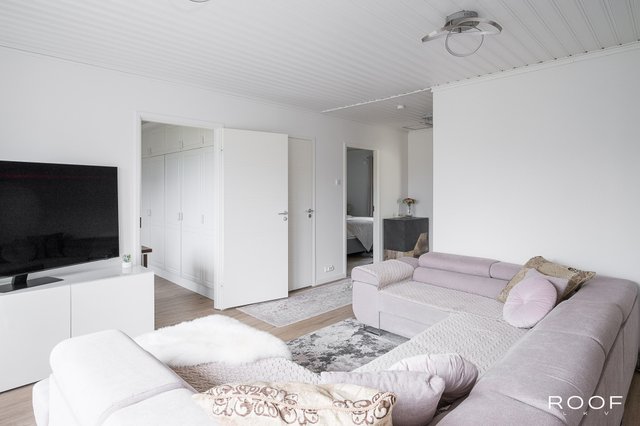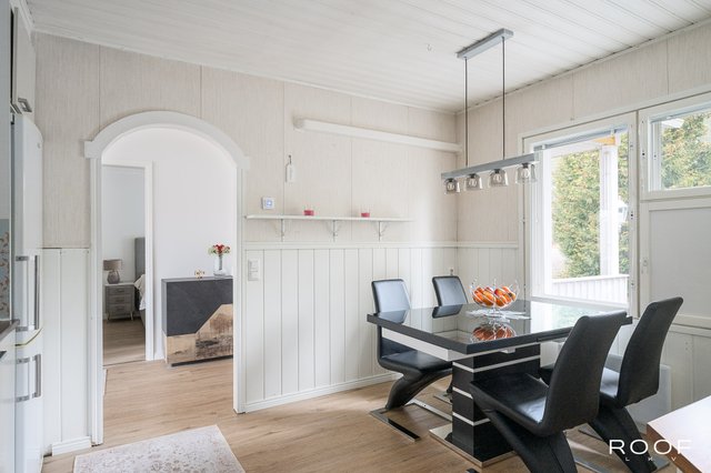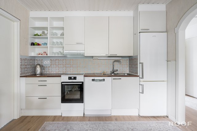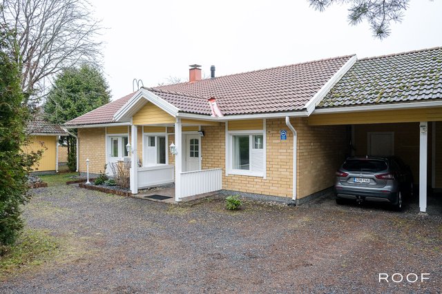 Tämä koti tarjoaa toimivaa ja viihtyisää asumista täysin maaseudun rauhassa. Pohjaratkaisu on selkeä ja käytännöllinen: kaksi tilavaa makuuhuonetta sekä yksi pienempi huone, joka soveltuu erinomaisesti myös työ- tai vierashuoneeksi. Kodin sydämmenä toimii takalla varustettu avara olohuone, jonka vierelle asettuvassa keittiössä on hhvkn kaappitilaa. Arkea helpottavat erillinen wc sekä tyylikkäästi remontoidun kylpyhuoneen yhteydessä sijaitseva wc ja tietysti oma sauna. Hyvin suunniteltu kodinhoitohuone, vaatehuone ja lämpimän varaston runsaat säilytystilat lisäävät asumismukavuutta. Autokatos tuo sujuvuutta arkeen, ja viihtyisä piha avautuu avariin peltomaisemiin.