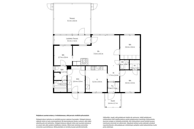 4h, k, kph, khh, vh, erillinen wc, lasitettu terassi