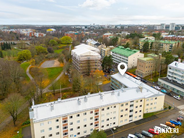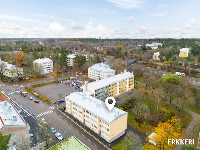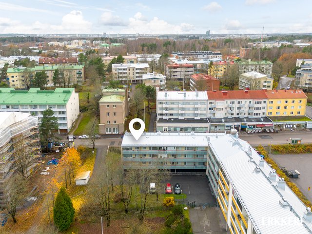 Sijainti on erinomainen: kaikki liikenneyhteydet ovat aivan lähellä. Juna-asema, raitiovaunupysäkki, bussilinjat sekä Raide-Jokeri tarjoavat nopeat yhteydet eri puolille pääkaupunkiseutua. Myös arjen palvelut löytyvät kävelyetäisyydeltä – lähin ruokakauppa sijaitsee Palokaivonaukiolla vain noin 400 metrin päässä.