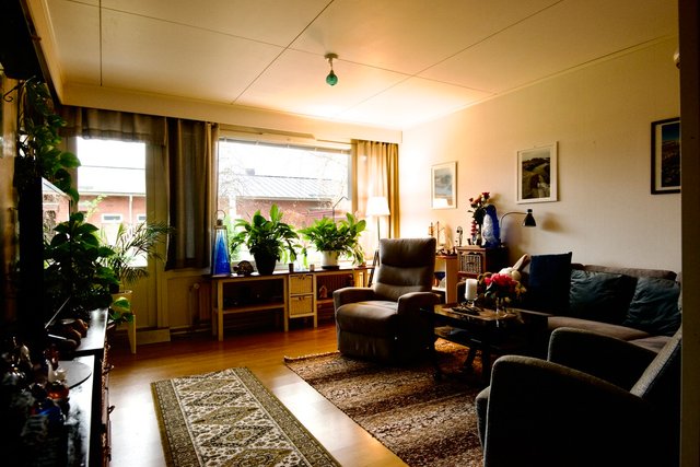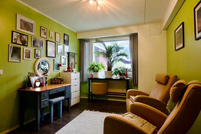 Denna gavellägenhet med tre rum och kök färdigställdes 1974 och är i gott skick.