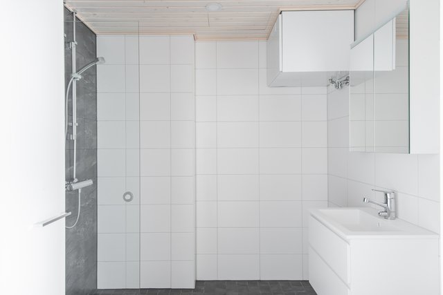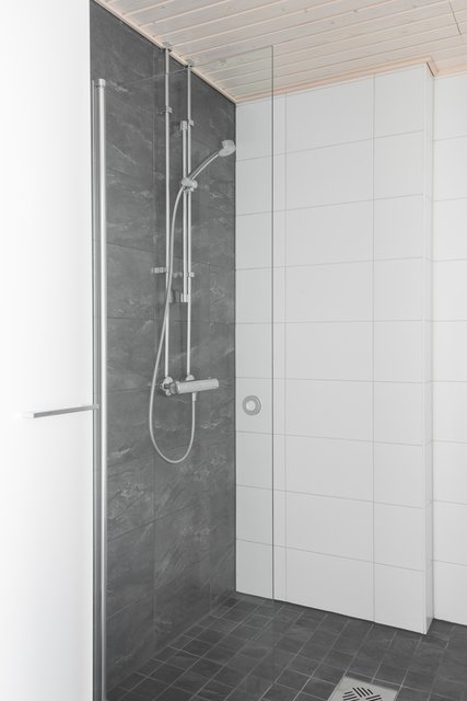 - WC-istuin, suihku, suihkuseinä, lattialämmitys, pesukoneliitäntä, peilikaappi, pesuallas, allaskaappi, ja bidee-suihku
