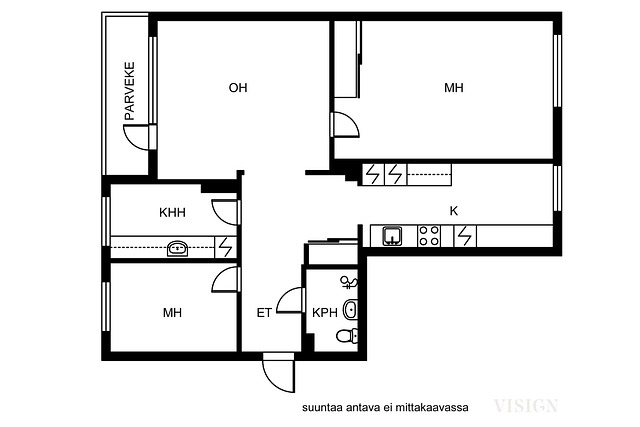 - Kodinhoitohuone mahdollista muuttaa makuuhuoneeksi.