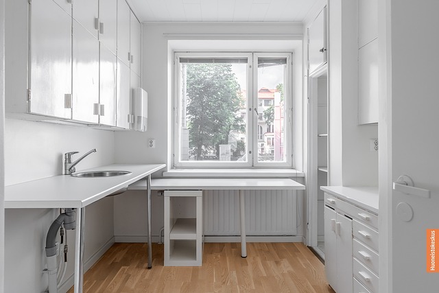 - Pöytätaso, pesukoneliitäntä, pyykkikaapit, ja silityspöytä/taso