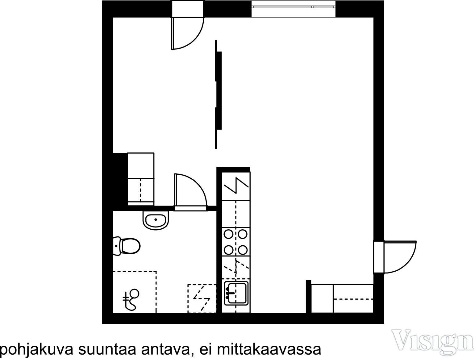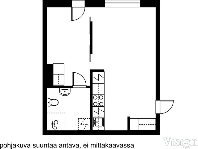 Ylimmän kerroksen, 34,5m2, kaksio.