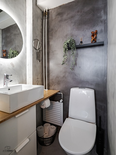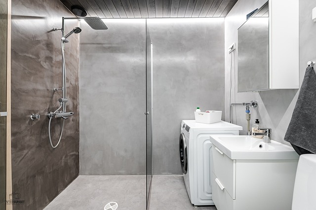 - Lattia mikrosementti, seinät mikrosementti. Varustelu: wc-istuin, allaskaappi, bideesuihku.