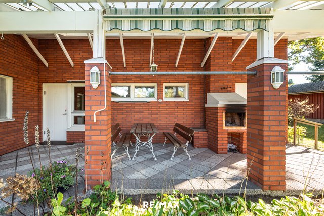 - Suojaisa takapiha, katettu terassi avotakkoineen sekä pergola