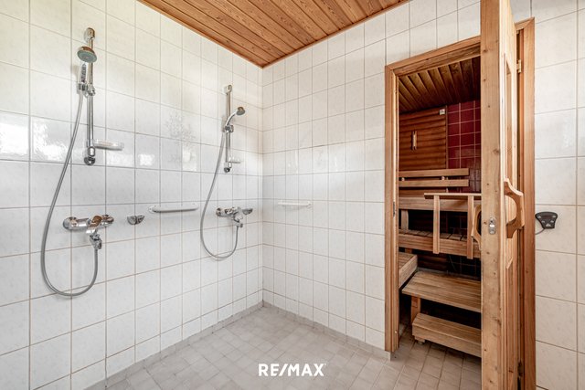 - Päämakuuhuoneen kylpyhuoneessa poreamme, WC, suihku, pesuallas ja allaskaappi / peilikaappi sekä lattialämmitys. Saunaosaston kylpyhuoneessa 2 suihkua, lattialämmitys, käynti saunaan sekä pukuhuoneeseen.
