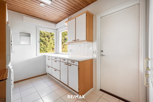 - Lattialämmitys, pesukoneliitäntä, pöytätaso, tila pesutornille, festivo kylmiö, jonka pakastin ei toimi, mutta jääkaappi., lattiakaivo, pesukone, ja kuivausrumpu