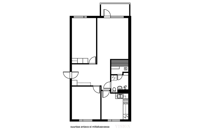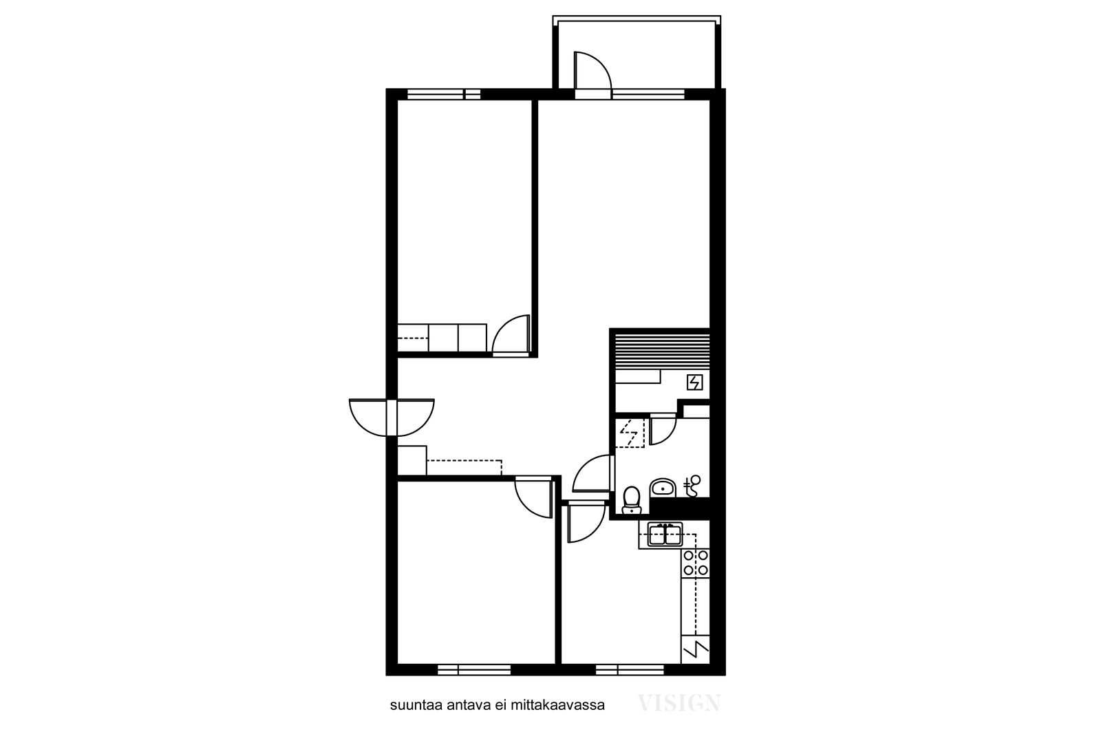 3h, k, sauna/kph/wc, lasitettu parveke (yj.3h+k)