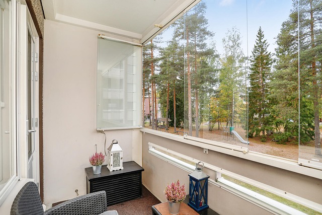 Lasitetulla länsiparvekkeella onkin kiva vilvoitella saunomisen jälkeen.