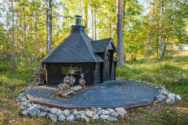 - Takapihalla sijaitseva grillikota ja kahden auton katos varastoineen