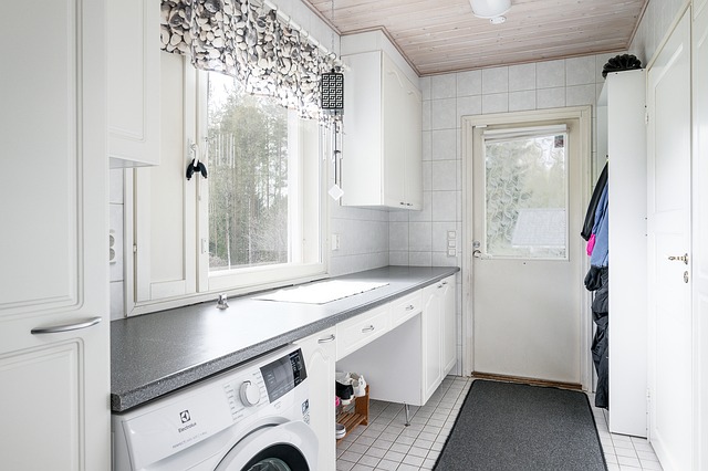 - Pesukoneliitäntä, lattiakaivo, pyykkikaapit, pöytätaso, ja lattialämmitys