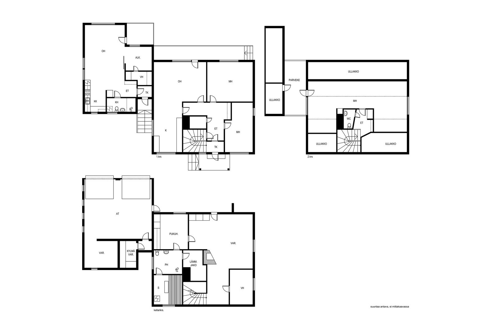 Asunto 1: 3h, rt, k, takkah, pukuh./khh, ph, s, tekninen tila, 3 wc, p , ter., Asunto 2: 2h, k,kh, parvi, at, var., ter.