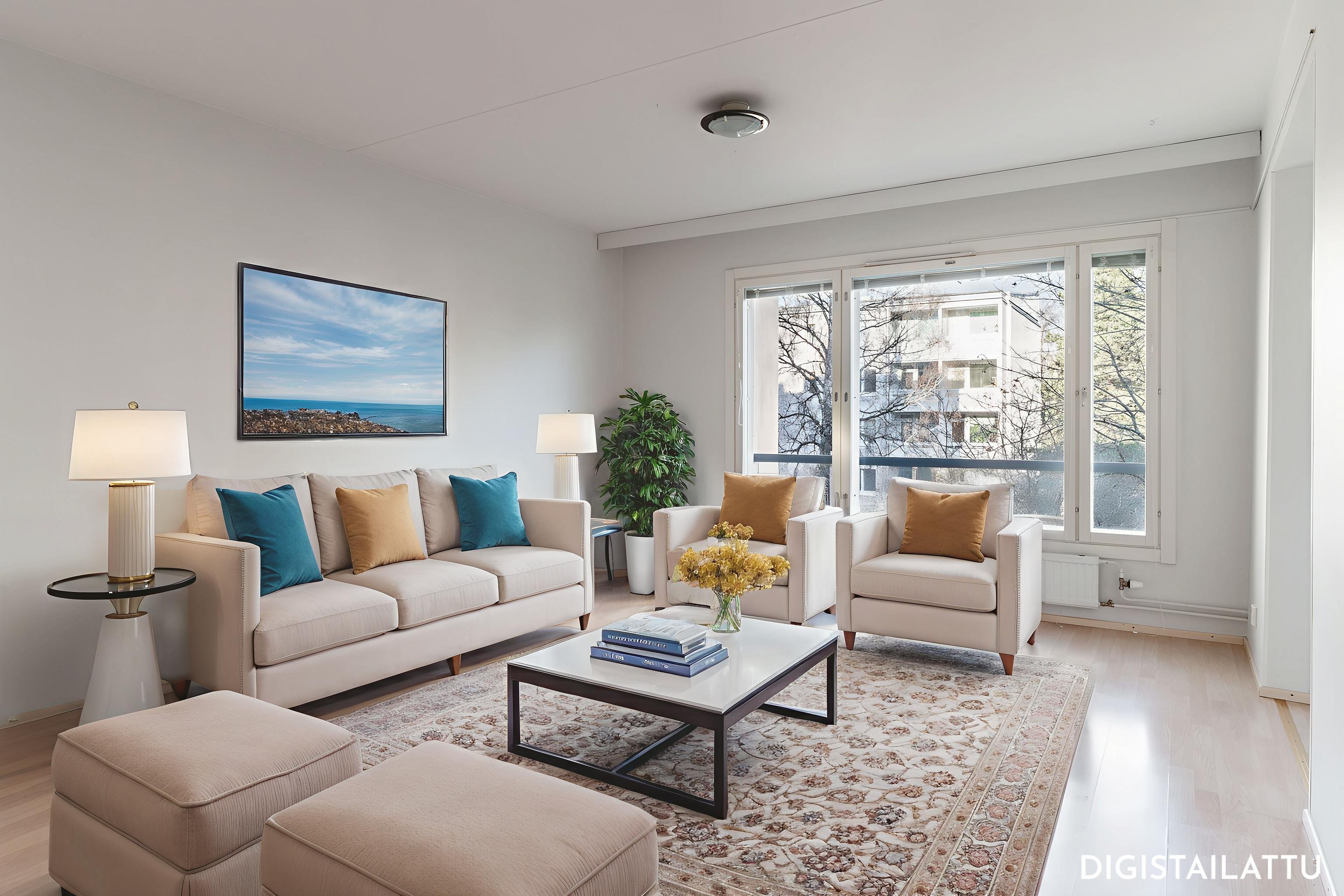Kodikas ja valoisa kaksio odottaa uusia asukkaita Vantaan Länsimäessä. Tämä 59 neliömetrin asunto sijaitsee rauhallisella alueella, mutta tarjoaa erinomaiset liikenneyhteydet. Bussipysäkki on 200 metrin päässä ja Mellunmänen metroasemalle on matkaa vain 700 metriä, ja tuleva ratikkapysäkki tuo entistäkin paremmat yhteydet pääkaupunkiseudulle.