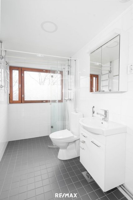- WC-istuin, suihku, suihkuseinä, pesukoneliitäntä, peilikaappi, pesuallas, allaskaappi, bidee-suihku, ja lattialämmitys