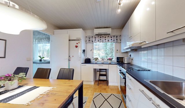 - Kiinteistön pinta-ala koskee koko kiinteistöä, josta noin puolet kuuluu tämän asunnon käyttöön.