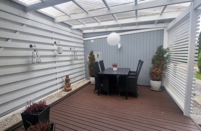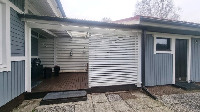 Pihalla on viehättävä huvimaja, joka kutsuu viettämään aikaa ulkona. Autotallissa on uusi sähköinen nosto-ovi, joka asennettiin vuonna 2022, ja etuterassille on lisätty tuulisuoja viime vuonna. Asunnon lämmitysjärjestelmä koostuu sähköstä, ilmalämpöpumpusta ja lattialämmityksestä, mikä takaa mukavan sisäilman ympäri vuoden.