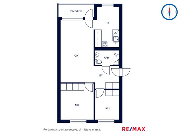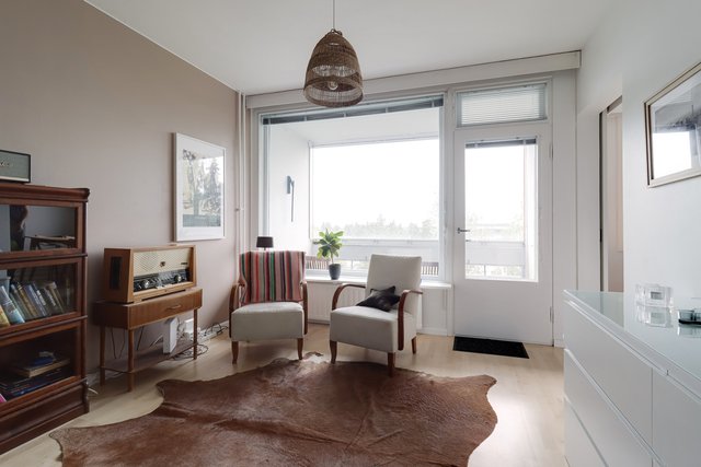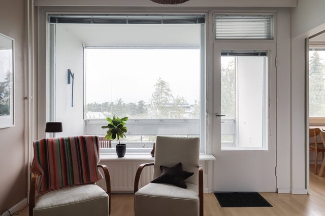 Valoisa olohuone ja kaksi makuuhuonetta on varustettu kauniilla parkettilattioilla. Asunnossa on myös lasitettu parveke, josta voi nauttia ilta-auringosta etelän ja lännen suuntaan. Kylpyhuone on moderni ja siellä on liitäntä pesukoneelle.
