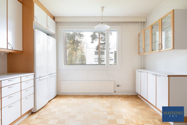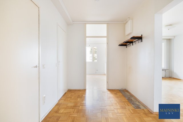 Ensimmäisen kerroksen huoneisto on iso ja kodissa on peräti neljä makuuhuonetta. Läpitalon pohjaratkaisu ja isot ikkunat päästävät poikkeuksellisen paljon luonnonvaloa sisään. Makuuhuoneet ovat 1960-luvun henkeen isoja ja voit halutessasi muuttaa yhden ruokailuhuoneeksi. Erillis-wc auttaa arjen rytmittämisessä aamuisin ja linjasaneerauksen yhteydessä peruskorjattuun kylpyhuoneeseen mahtuu pesutornikin. Asunto kaipaa päivitystä, mikä mahdollistaa kodin laittamisen juuri sellaiseksi kuin haluat.