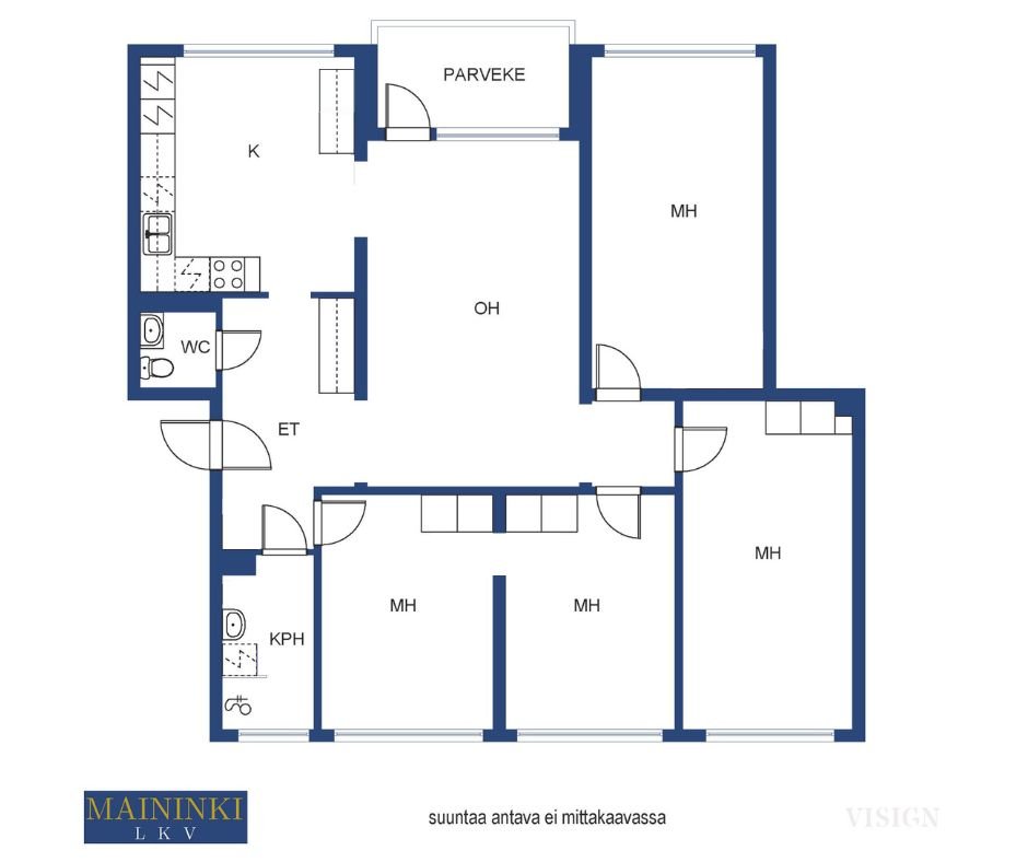 - Yhtiöjärjestyksen mukainen, Isännöitsijäntodistuksen mukainen, (Pinta-ala ei ole tarkistusmitattu ja todellinen pinta-ala voi olla suurempi tai pienempi, kuin ilmoitettu)