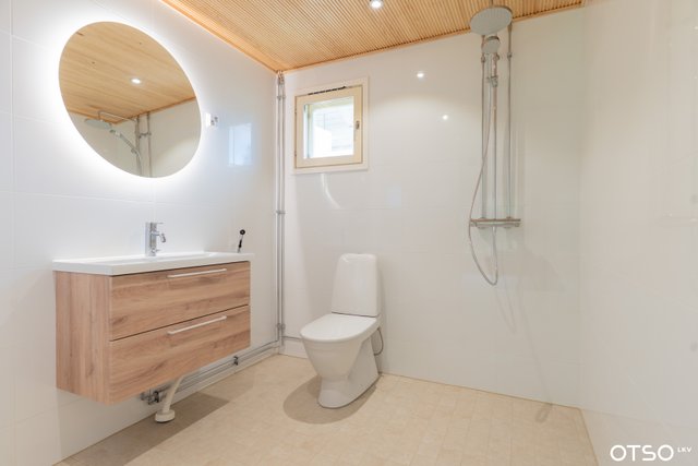- WC-istuin, suihku, lattialämmitys, bidee-suihku, pesuallas, allaskaappi, peili, ja pesukoneliitäntä