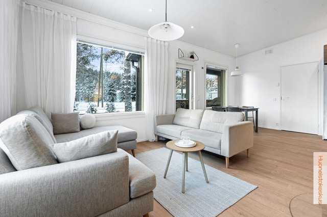 - Ei ole tiedossa mitään negatiivista asumisviihtyvyyteen ja kaikki laitteet mitkä kuuluu kauppaan, toimii kuten kuuluukin toimia. Junarata joidenkin satojen metrien päässä. Talvella vinyylien väliin tulee joskus rako johtuen lämpötilavaihtelusta. Vinyylit asettuu paikoilleen napauttamalla.