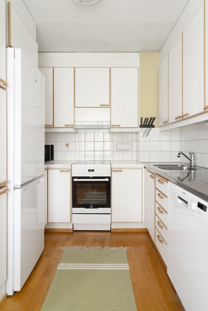 - Jääkaappipakastin, liesituuletin, astianpesukone, ja uuni