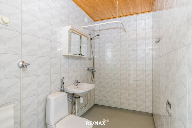 - WC-istuin, suihku, pesukoneliitäntä, peilikaappi, pesuallas, ja bidee-suihku