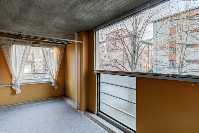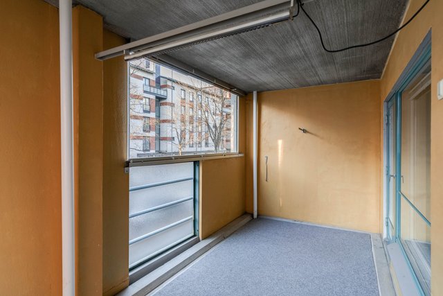 - Olohuoneesta pääsy isolle lasitetulle parvekkeelle. Parvekkeella infrapunalämmitin.