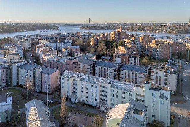 Tämä hyväkuntoinen päätyasunto tarjoaa mukavaa asumista vuonna 1995 valmistuneessa talossa. Kodin tavallisesta poikkeava pohjaratkaisu tekee tästä kokoistaan isomman tuntuisen ja ikkunat kolmeen eri suuntaan tuovat luonnonvaloa koko huoneistoon. Olohuoneesta pääsee suoraan etelään/länteen avautuvalle suurelle lasitetulle parvekkeelle, jonne on myös käynti suoraan saunasta. Remontoidun, toimivan keittiön yhteydessä on erillinen ruokailutila. Kaksi makuuhuonetta, joista toisessa on lisänä vaatehuone. Erillinen wc, minne saat tarvittaessa vaikka pesutornin. Taloyhtiöstä löytyy asianmukaiset säilytystilat, kuten kellarikomerot ja pyörävarastot, sekä pyykkitupa ja kuivaushuone.