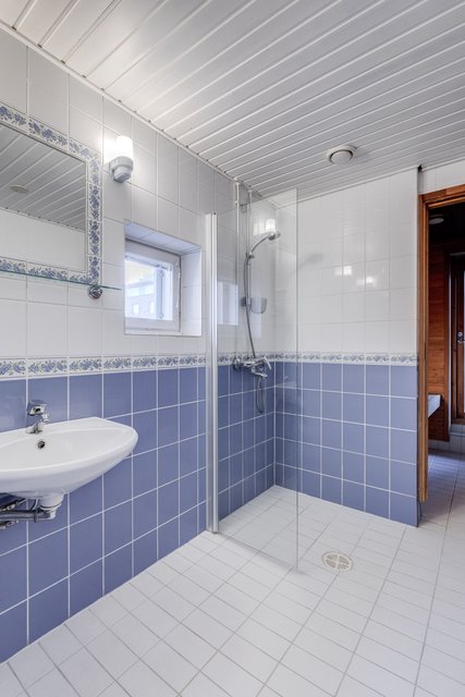 - Suihku, suihkuseinä, peili, ja pesuallas