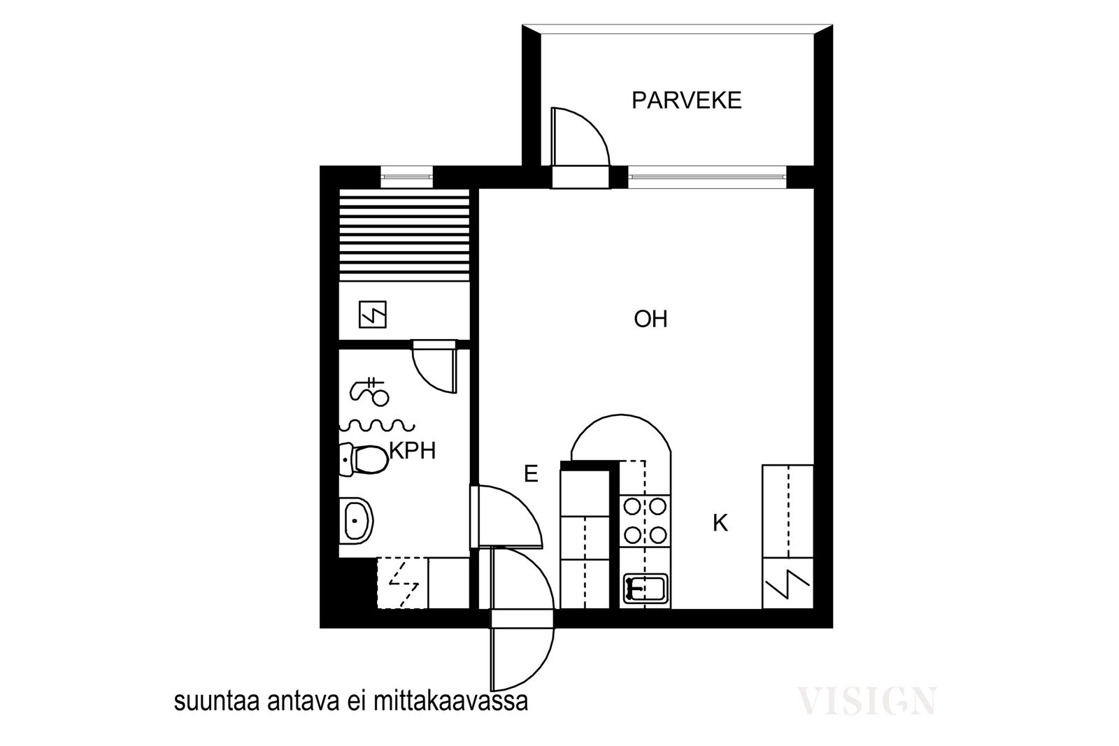 - Ovipuhelin alaovelle. Lisätietoja sisältyvistä varusteista: huoneistokohtainen ilmanvaihtokone, kiinteät valaisimet, sälekaihtimet/rullaverhot.