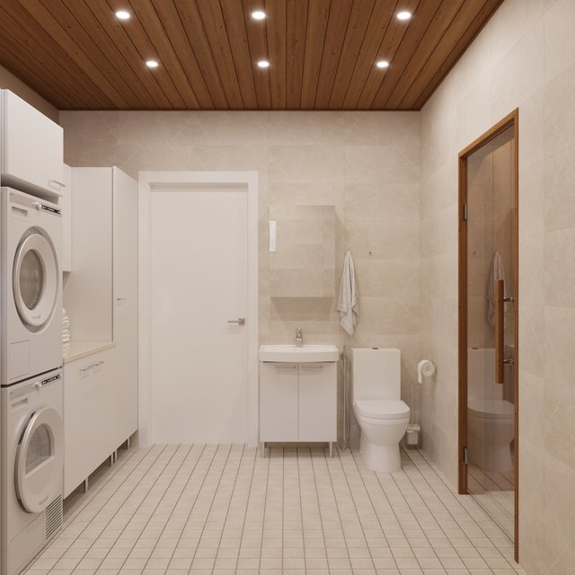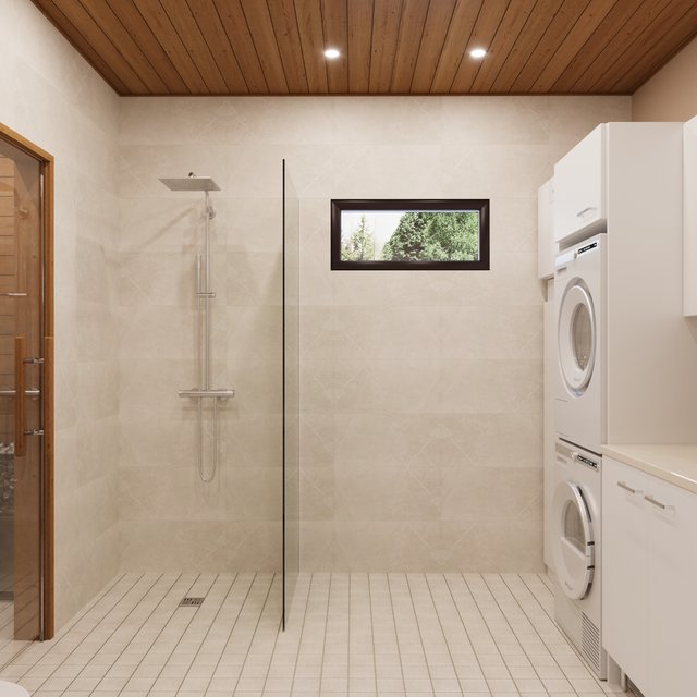 - Saunassa ja pesuhuoneessa käsitelty kuusipaneeli (tervalepän sävy). Muissa tiloissa mdf-paneeli.