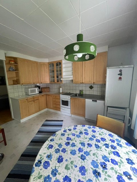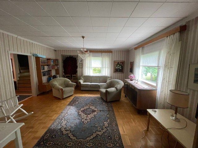 - Talo on 1 1/2 kerrosta sekä alakerta, jossa kellari ja sauna.