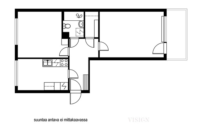 Asunnossa on hyvänkokoinen olohuone, josta käynti lasitetulle parvekkeelle, makuuhuone on harjun puolelle ja siinä on mukavasti kaappitilaa. Keittiö on erillinen ja sen yhteydessä on tila ruokapöydälle. Lisäksi on kylpyhuone sekä vaatehuone, huoneistoa on remontoitu ja se on pinnoiltaan siisti.