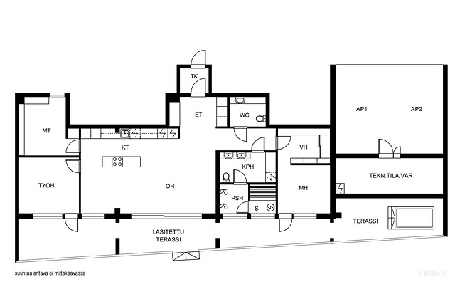 - Olohuoneesta lasiliukuseinä lasitetulle terassille.