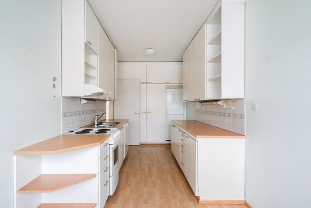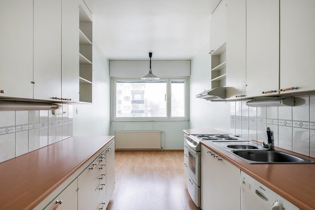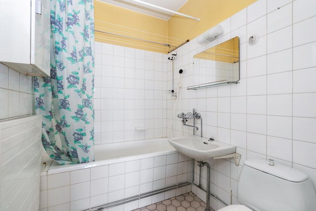 Asunnon suurin vahvuus piilee sen mahdollisuuksissa. 66 neliön valoisa kaksio on osittain alkuperäiskuntoinen, mikä antaa erinomaisen lähtökohdan remontoida rauhassa ja tehdä tiloista juuri omannäköiset.