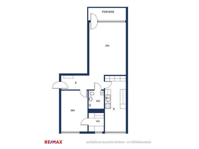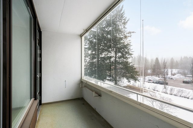 Olohuone on reilun kokoinen ja jatkuu lasitetulle parvekkeelle. Keittiössä on toimiva perusvarustus ja laminaattilattia, ja kylpyhuoneessa on harvinaisempi yhdistelmä suihkua ja kylpyammetta. Makuuhuoneen yhteydessä oleva ikkunallinen vaatehuone helpottaa säilytystä ja pitää tilan selkeänä.