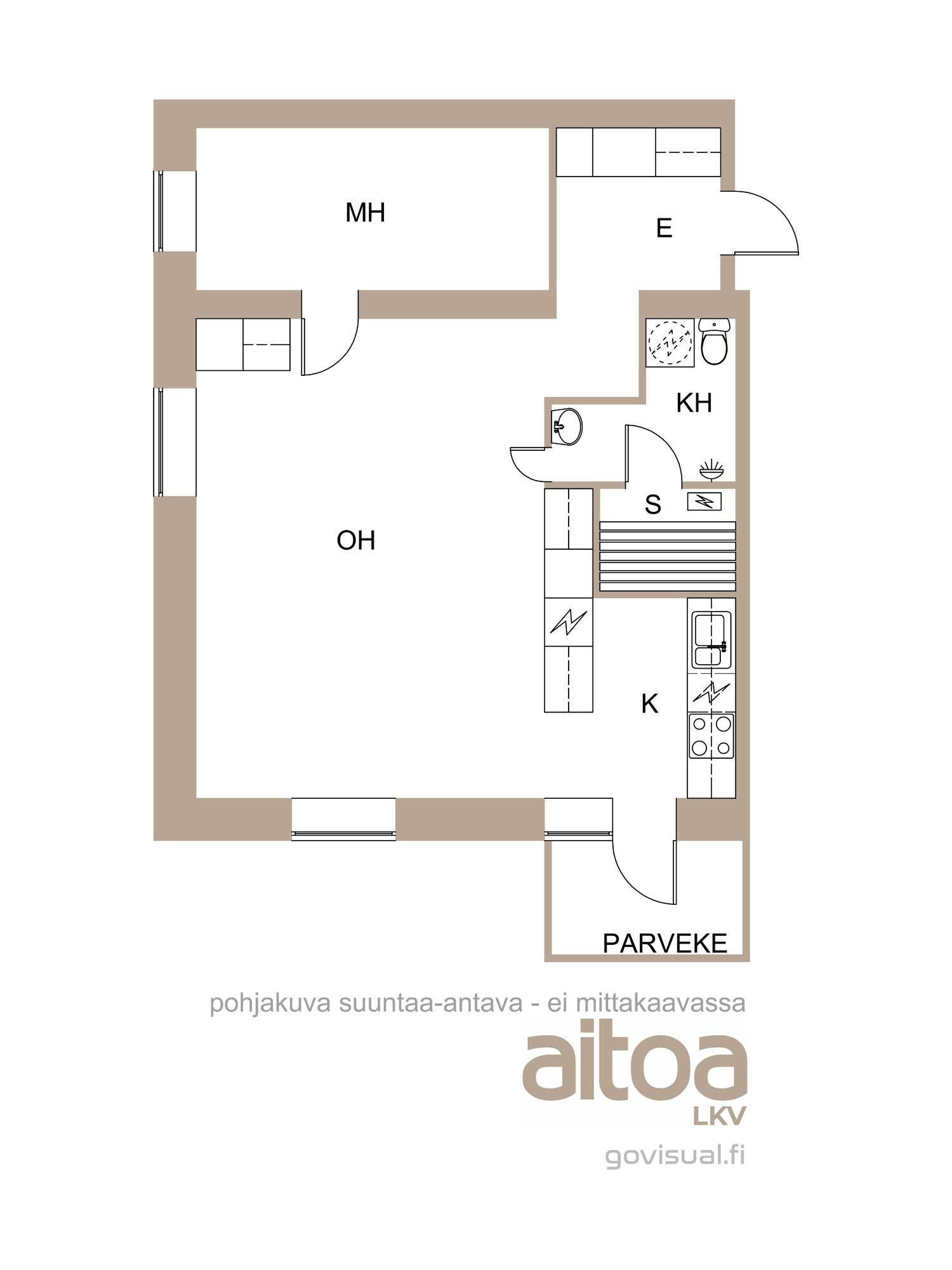 - Ei tarkistusmitattu. Pinta-alat saattavat tämän ikäisissä kohteissa (yhtiö rekisteröity ennen 01.01.1992) poiketa olennaisestikin asuinrakennusten nykyisten mittaustapojen ja standardien (SFS 5139) mukaan laskettavasta asuintilojen pinta-alasta. Pinta-ala voi siis olla edellä mainittua pienempi tai suurempi.
