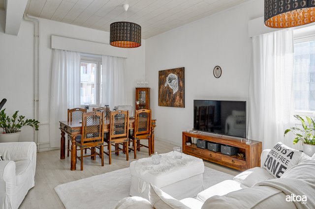 Omalle tontille alun perin vuonna 1934 rakennettu talo kävi läpi mittavan peruskorjauksen vuonna 1991. Tämä kaksio sijoittuu talon kolmanteen kerrokseen, johon pääsee kätevästi hissillä. Oma sauna ja parveke ovat kiva lisä huoneistoon.