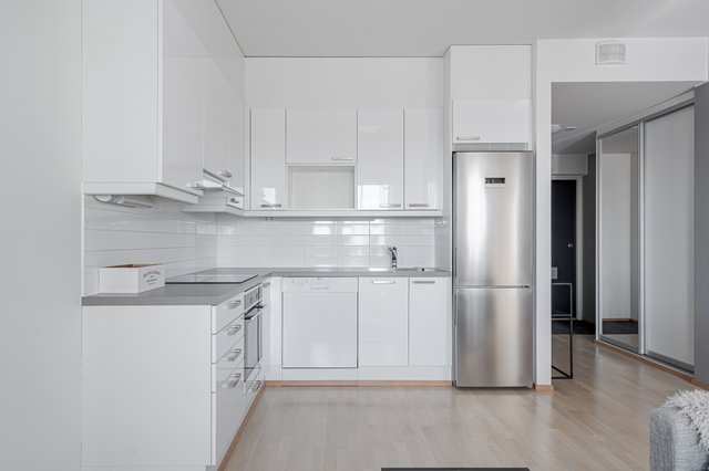 - Jääkaappipakastin, liesituuletin, erillisuuni, ja liesi