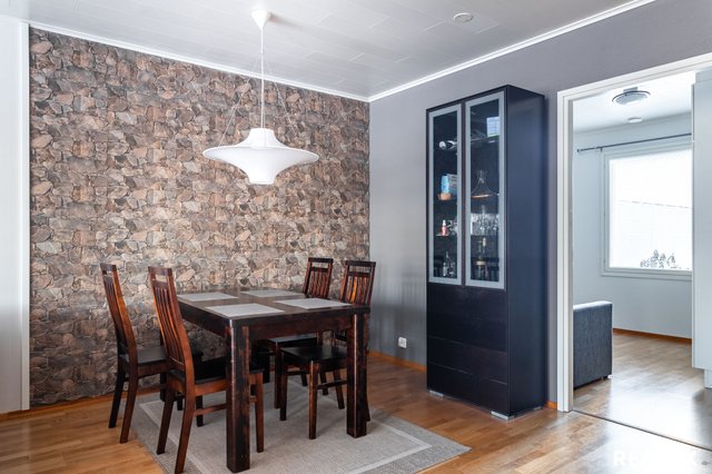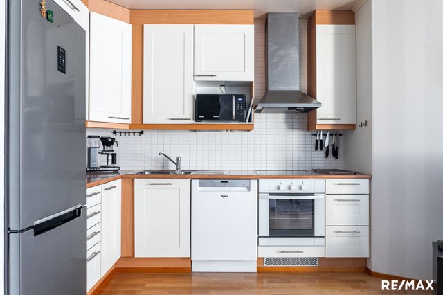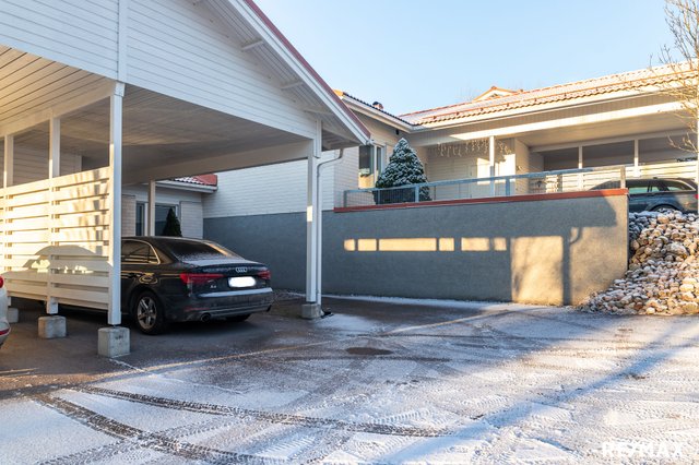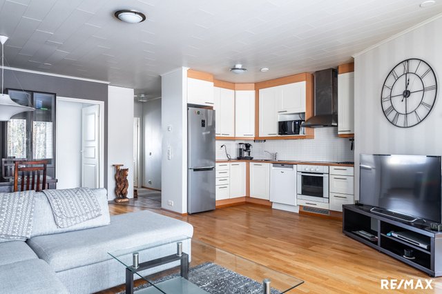 Keittiö on varusteltu nykyaikaisin kodinkonein, ja olohuoneen parkettilattia luo lämpimän tunnelman. Asunnon pihaterassi on ihanteellinen paikka rentoutumiseen ja kesäpäivistä nauttimiseen. Lisäksi huoneistoon kuuluu oma autokatospaikka, mikä tekee autolla liikkumisesta vaivatonta.