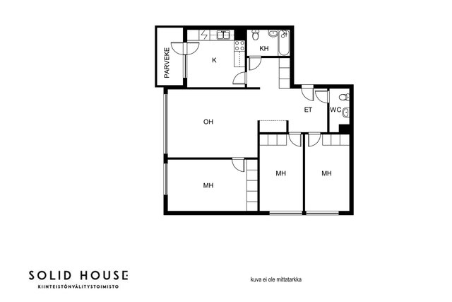 Asunnon pohjaratkaisu on toimiva ja soveltuu erinomaisesti perheelle. Kolme makuuhuonetta tarjoavat hyvin tilaa.