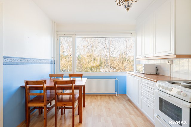 Lahden Nastolassa, Rakokiven palveluiden äärellä kolmekerroksisen talon toisen kerroksen valoisa läpitalohuoneisto etsii uutta omistajaa.