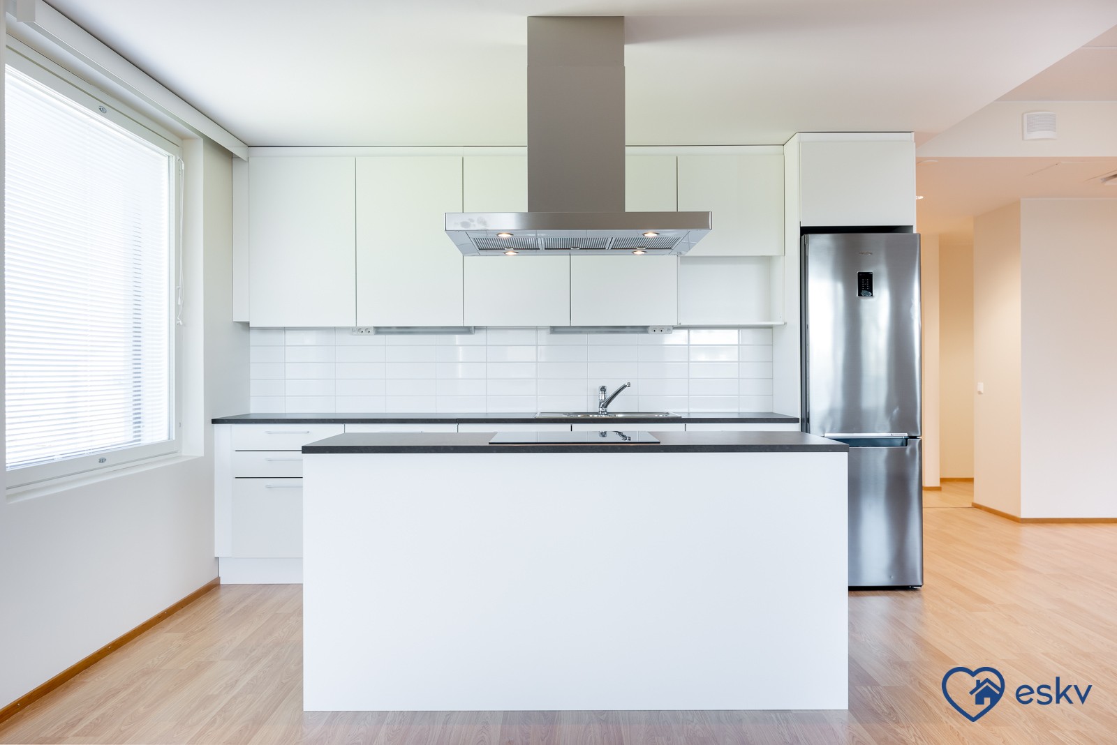- Uudet/rosteria: Induktioliesi, erillisuuni, liesituuletin, astianpesukone, jääkaappipakastin